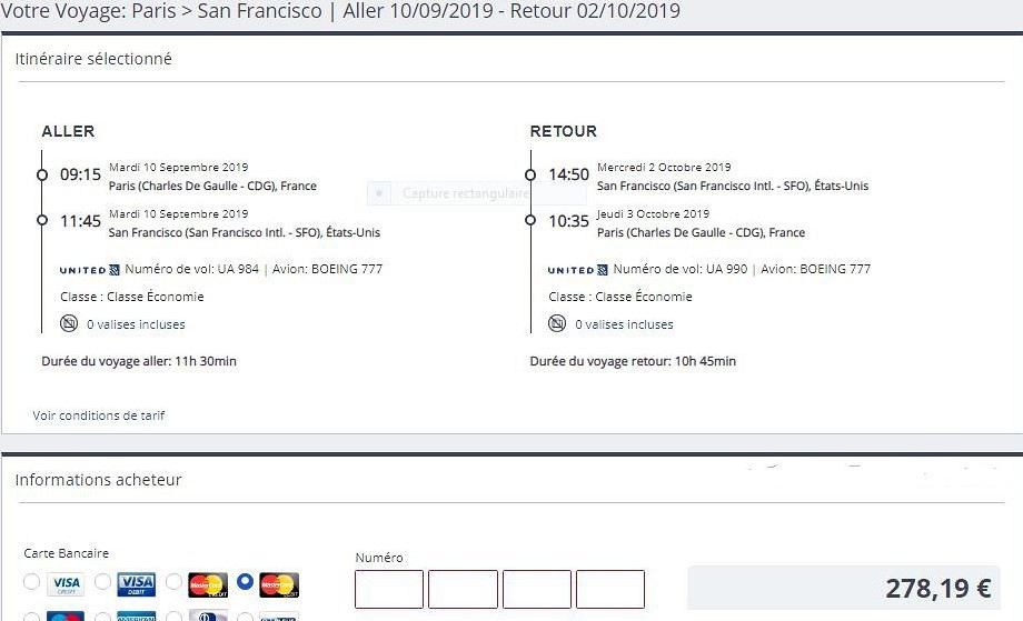 Aller le 17/10/2020 united airlines vol 1 escale 14h10 (durée).